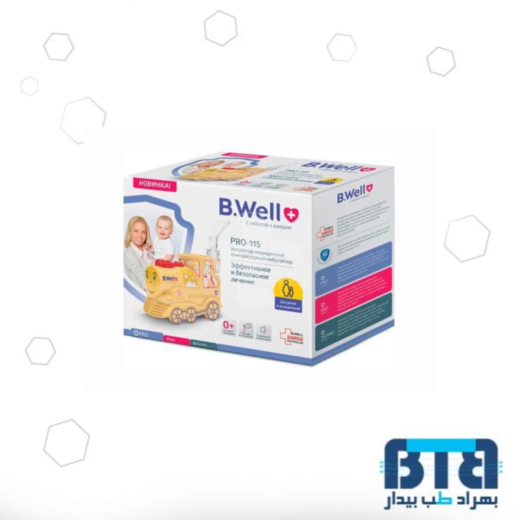 نبولایزر کمپرسور کودک برند B.WELL مدل PRO-115:موثر برای درمان بیماری های تنفسیدارای طراحی اسباب بازی برای کودکان دارای 3عدد ماسک برای استفاده تمام اعضای خانواده قابلیت عملکرد طولانی برای استفادهقابلیت استفاده برای درمان تنفسی و استنشاق موثر دارودارای ماسک مخصوص برای درمان گرفتگی بینیمناسب استفاده خانگی و حرفه ای